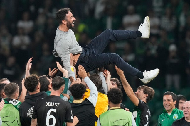 ▲ 후벵 아모림 스포르팅CP 감독에게 제대로 당한 펩 과르디올라 맨체스터 시티 감독(첫 번째 사진), 둘은 11월 A매치 휴식기가 끝난 뒤에는 12월 예정된 16라운드 맨체스터 더비에서 재회하게 된다. 아모림이 맨체스터 유나이티드 지휘봉을 잡기 때문이다. ⓒ연합뉴스/EPA/AP